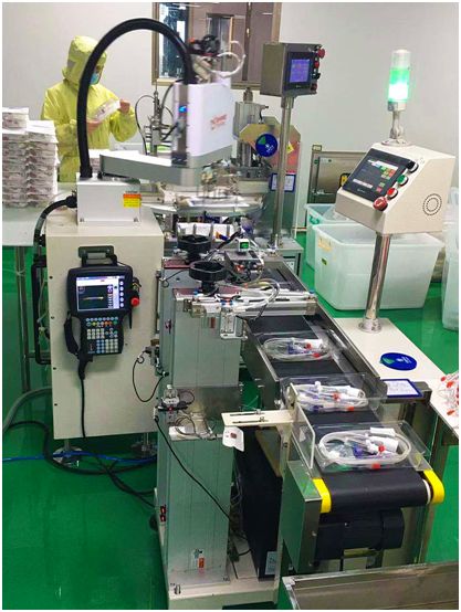 作為2019年度百合醫療的重點投資項目,輸注分廠的自動化生產線于近期正式投入生產。該生產線采用機器人組裝、工人協助的生產方式,結合自動化設備的精密性與產業工人的機動性,形成了高質高效的人機協助生產線。該生產線主要由機器人焊接設備、自動組裝機、自動封口機等設備構成。精細化、精密化、智能化的操作為生產提供了可靠的保證。