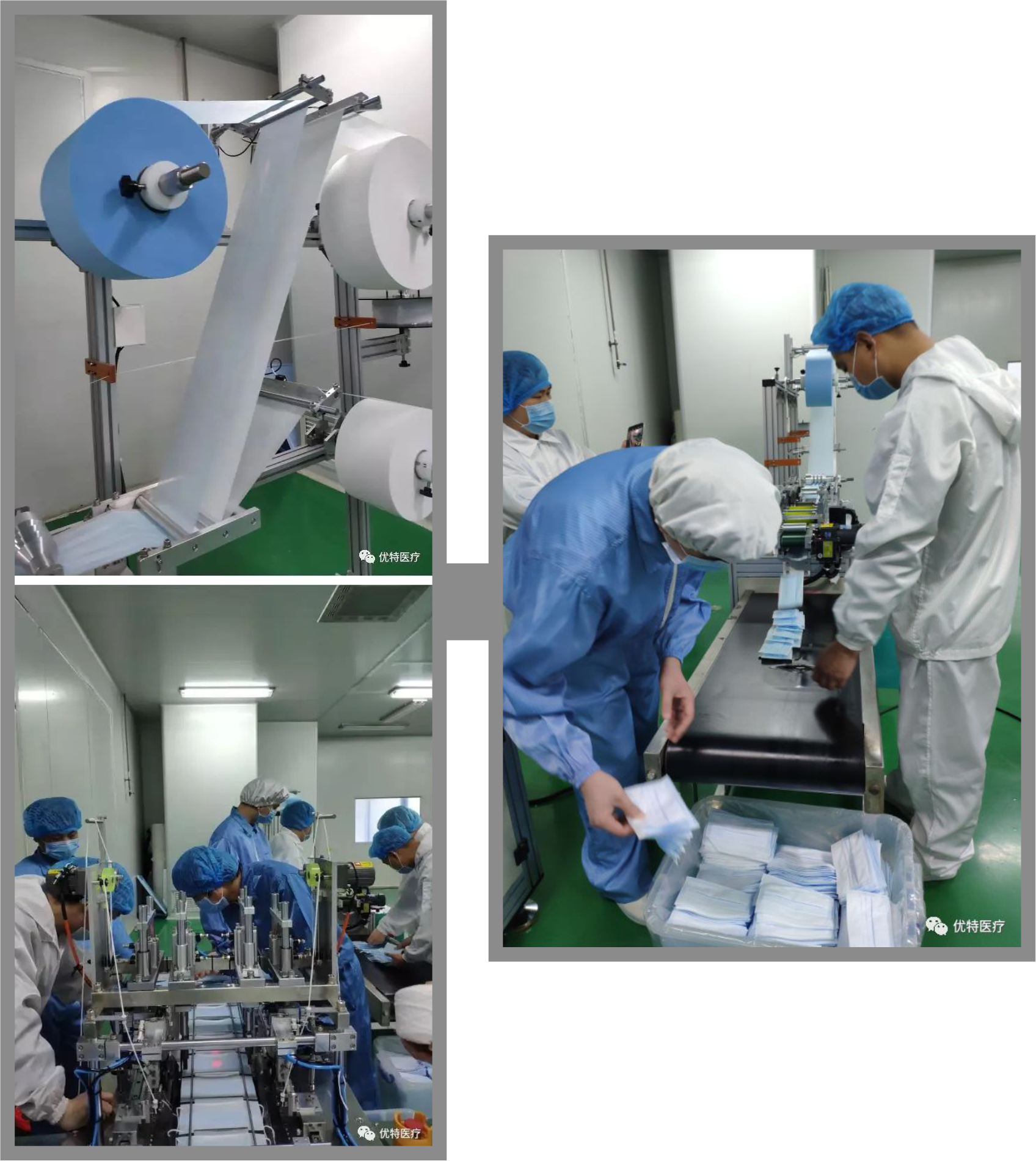 優特公司員工全力以赴,技術人員及生產、質量人員及時到位,在共同努力下,優特醫療即將生產首批口罩,將極大的緩解了社會醫用口罩的需求。