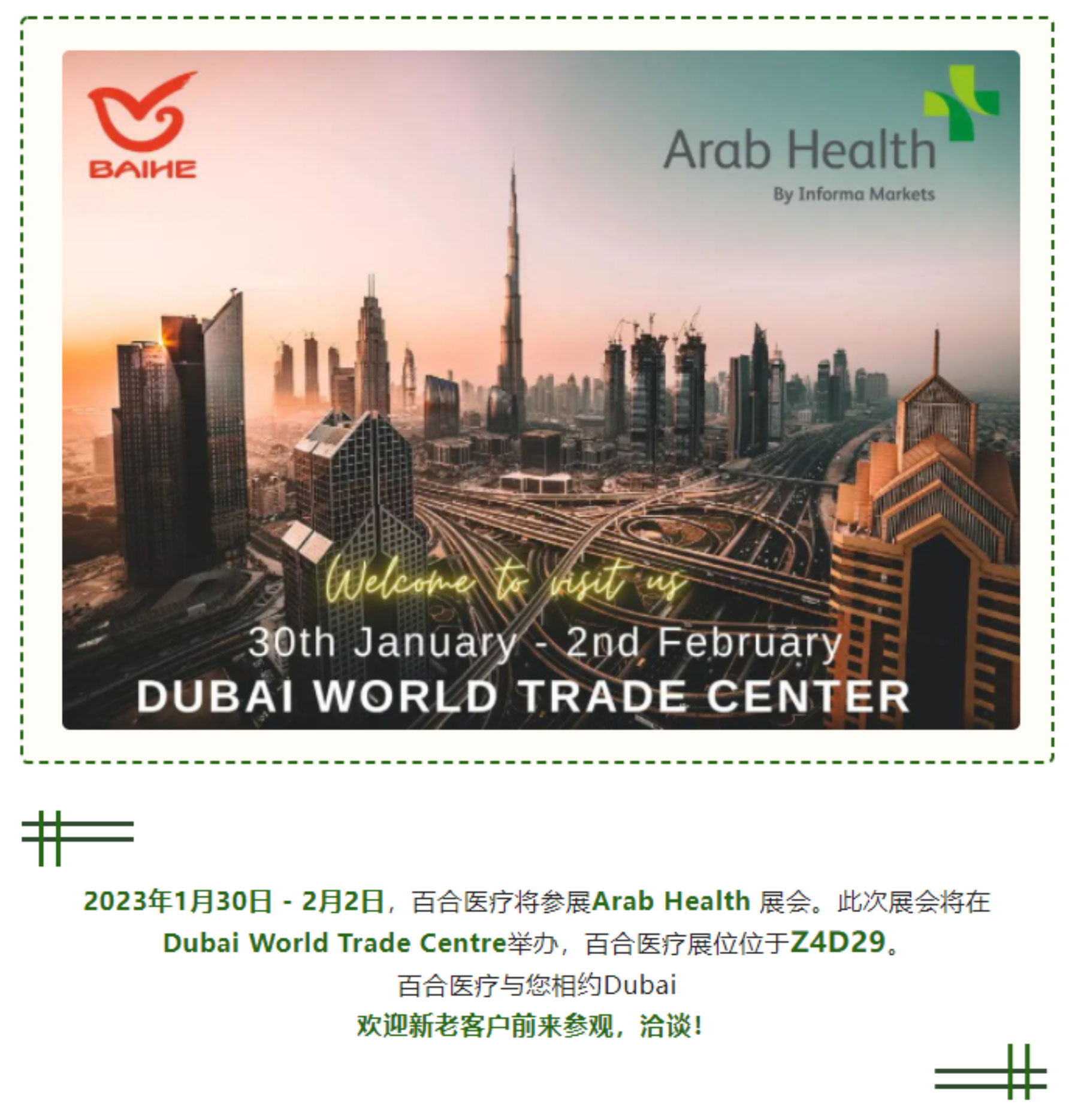 2023年1月30日 - 2月2日Arab Health 展會,百合醫(yī)療歡迎您