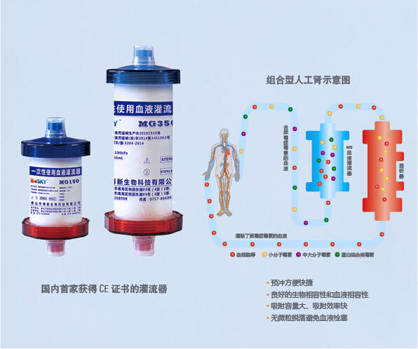 MG系列一次性使用血液灌流器(以下簡稱MG灌流器)具有吸附終末期腎病(ESRD)患者體內中大分子毒素和蛋白結合類毒素的能力,聯合血液透析治療能夠減輕患者并發癥癥狀,提高其生活質量。